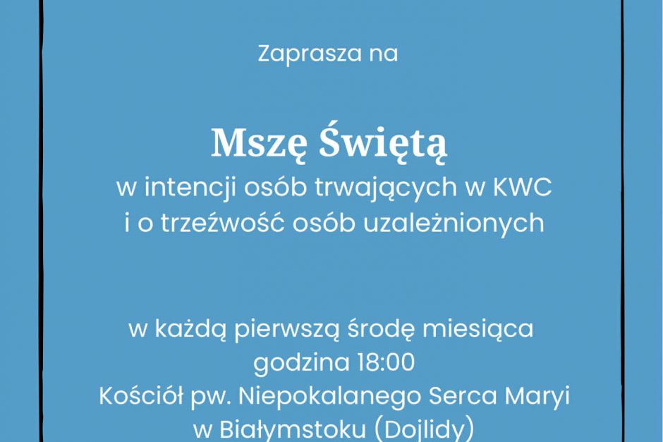 Msza Święta w intencji osób trwających w KWC. 29 marca 2026 | autor: Gal Anonim Zapraszamy na Mszę Świętą w intencji osób trwających w KWC Please enable JavaScript to view the comments powered by Disqus.